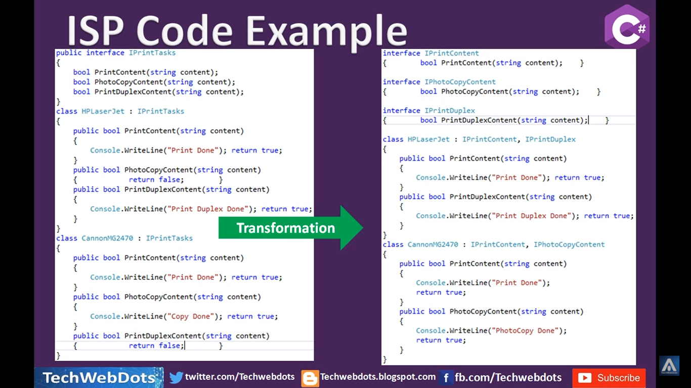 So we need to design the software in such a way that everything in a class or module should be related to a single responsibility. That does not mean your class should contain only one method or property, you can have multiple members (methods or properties) as long as they are related to a single responsibility or functionality. So, with the help of SRP in C#, the classes become smaller and cleaner and thus easier to maintain.
